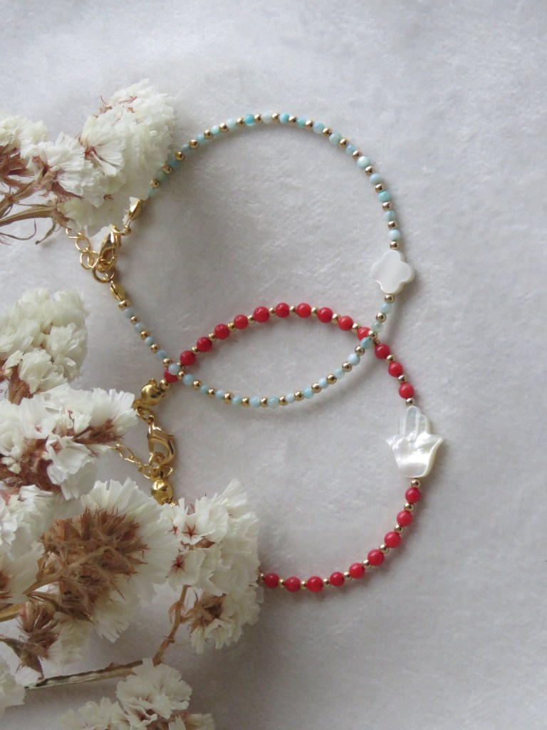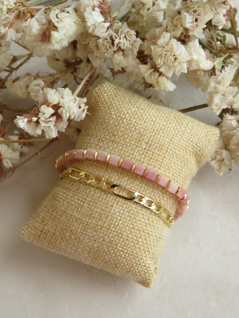 Juego de pulseras con materiales naturales y de alta calidad.